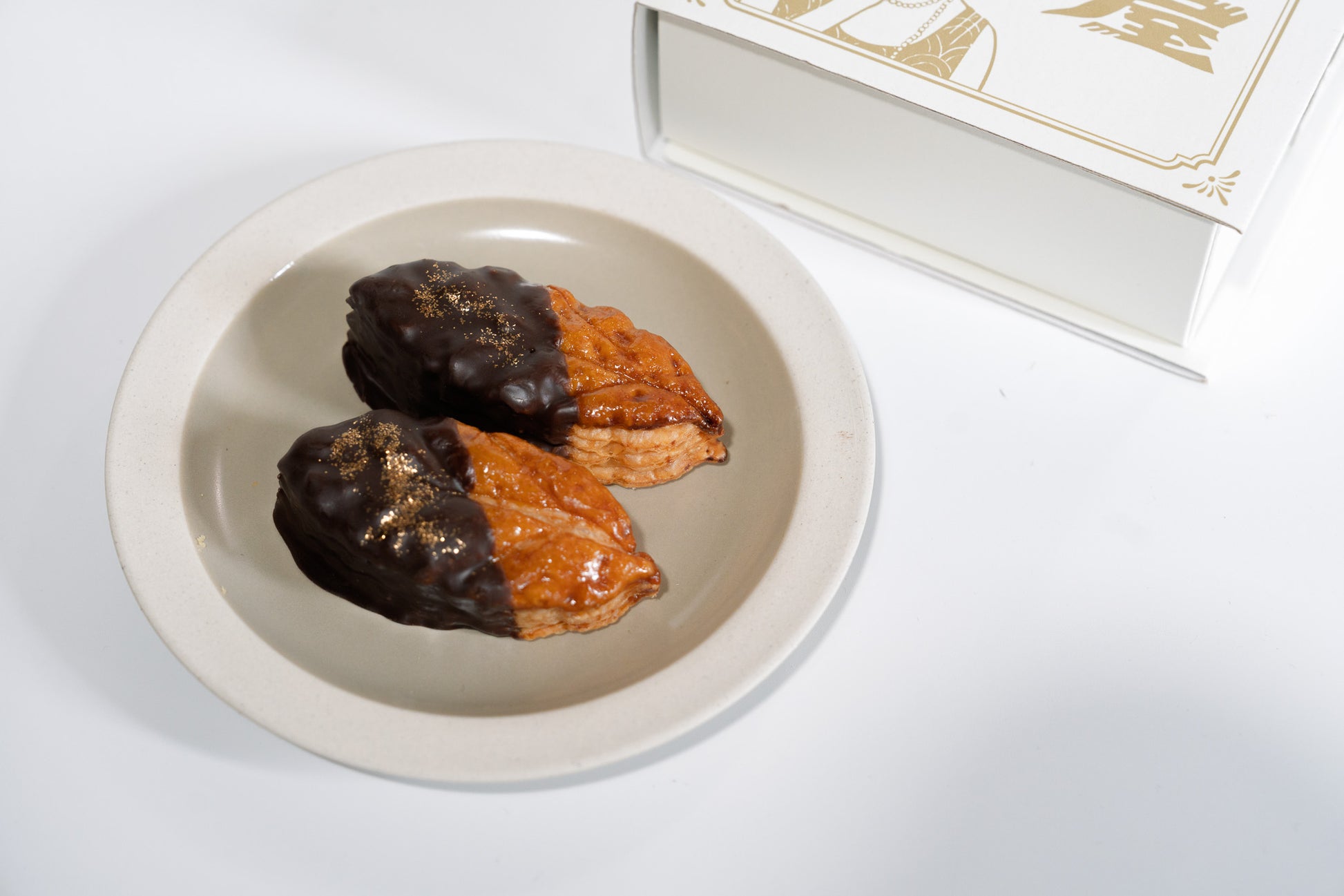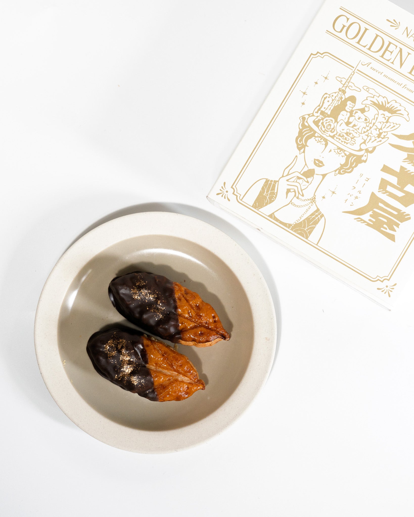 サクサクのゴールデンパイにチョコレートと金箔をあしらったオリジナルパイです!
