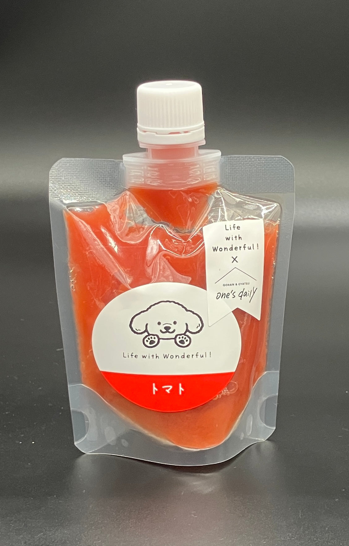 トマト本来の旨味を感じるさわやかな味わい!豊富なビタミンCで皮膚や被毛を健康に保ったり、血圧の調整など、わんちゃんのからだにもうれしい栄養素です。