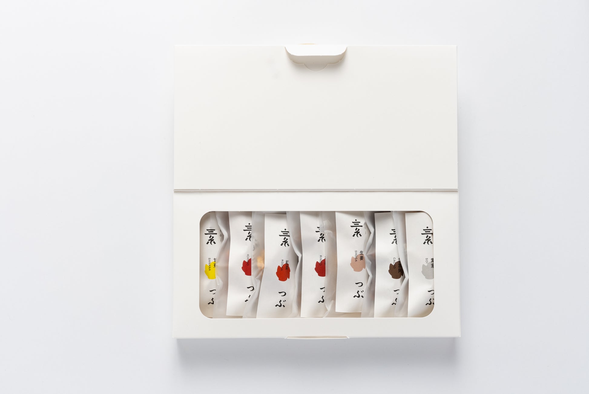 定番フレーバー【素意/加加阿/生姜/林檎/紅茶/苺/甘蕉】の7種をセットにしました。