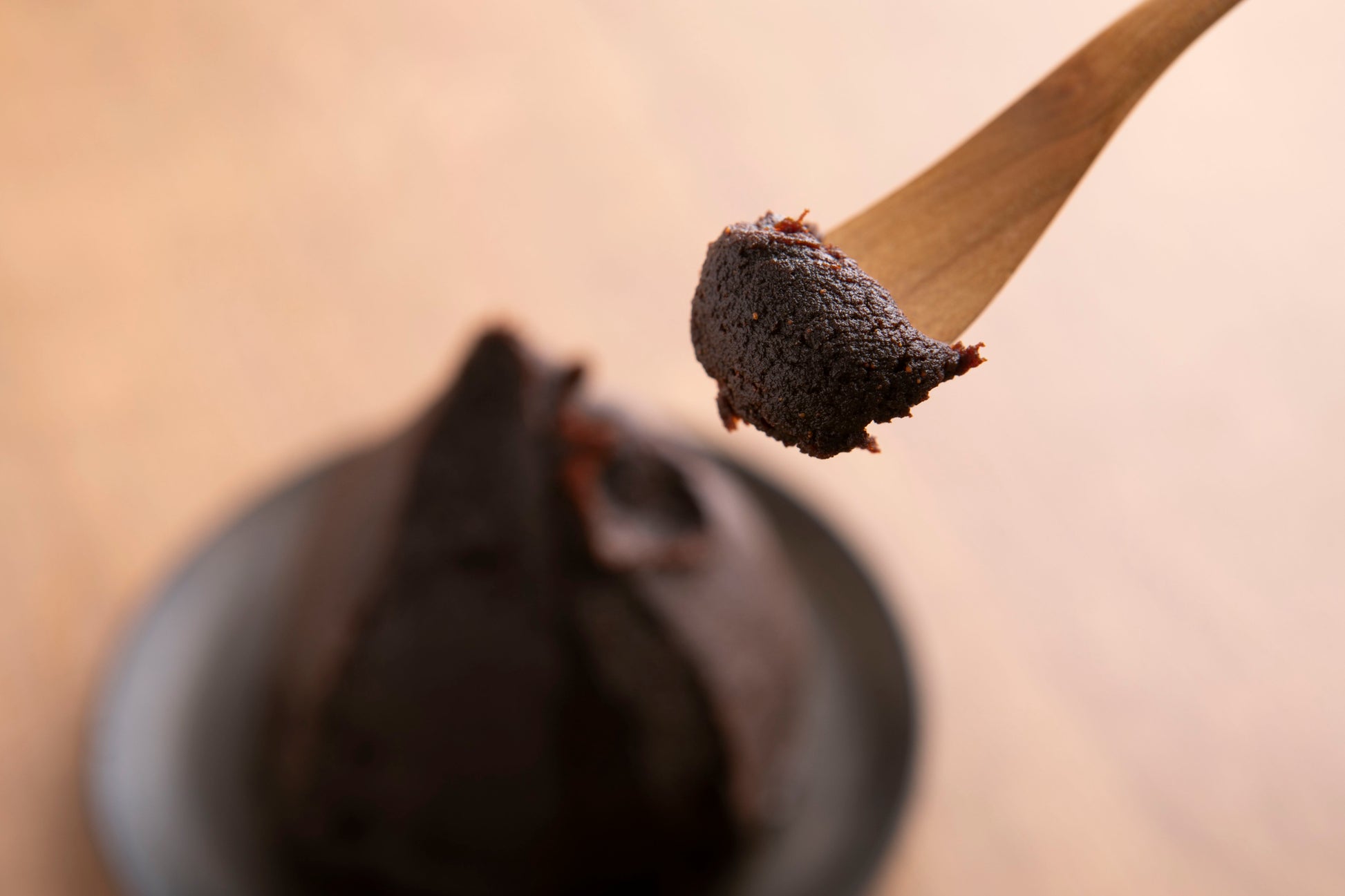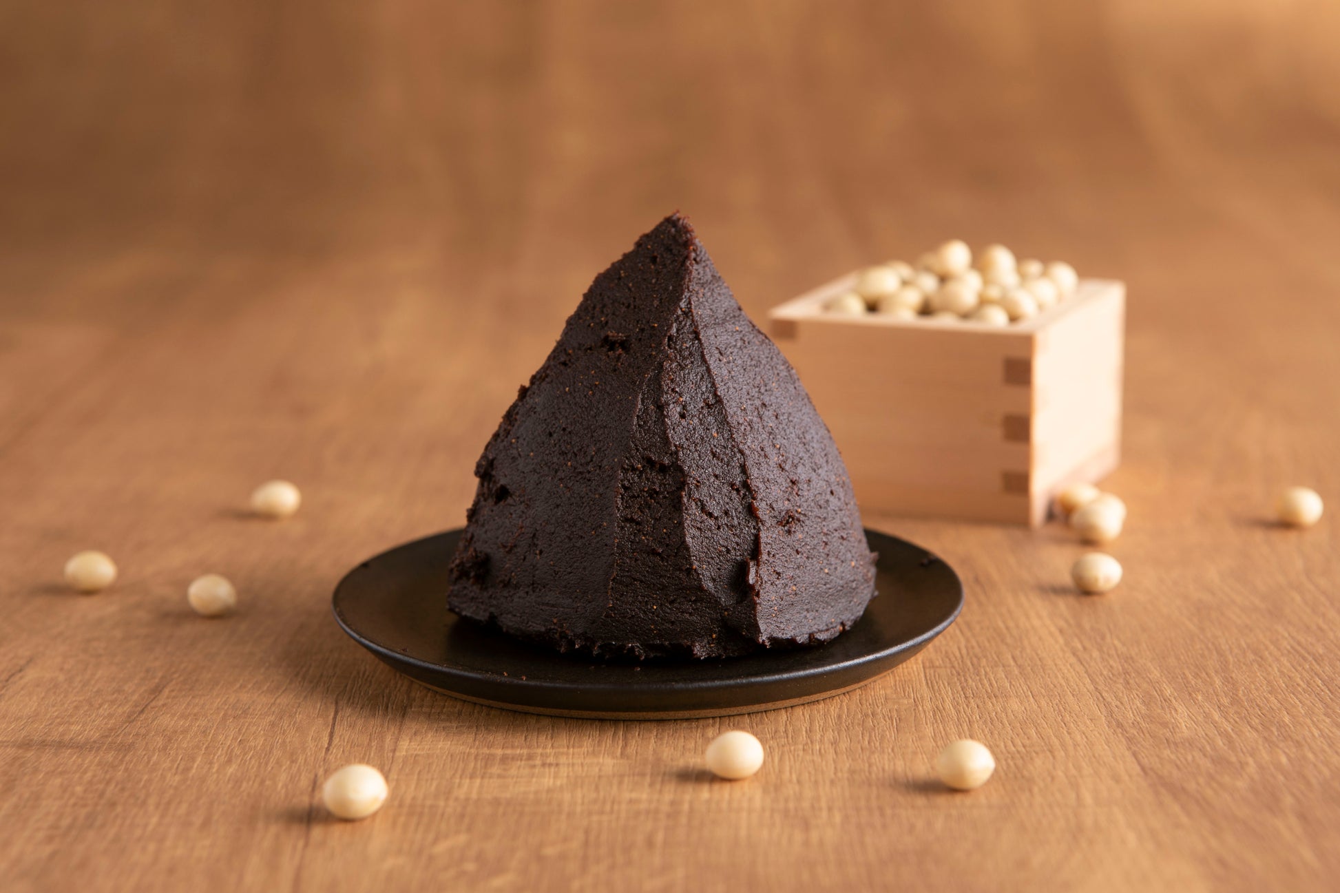 八丁味噌の本場、愛知県岡崎市八丁町、創業1337年の味噌蔵にて二夏二冬天然熟成させた八丁味噌。